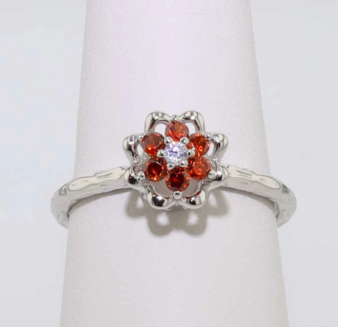 (918) 456-6233Sterling Silver Synthetic Garnet January Tulip Ring